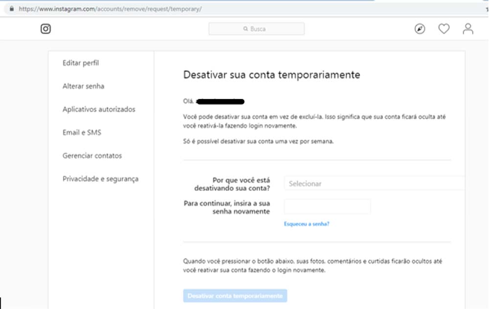 Antes de excluir a conta, entre nela e baixe uma cópia das suas informações (como fotos e publicações) do instagram.
